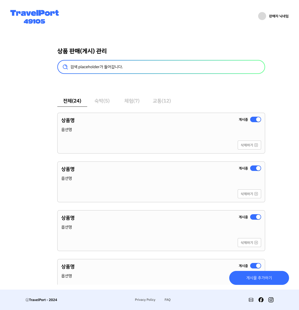 프로젝트 목적: 사용자 페이지와 판매자 페이지를 포함한 여행 예약 플랫폼 구축